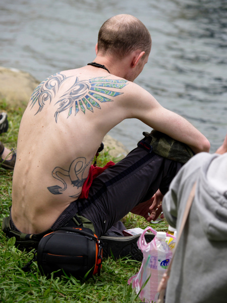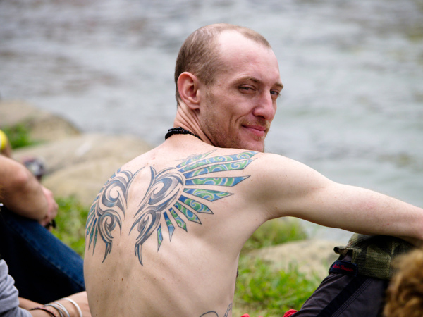 很漂亮的刺青,要求幫他照像,很大方的答應。
